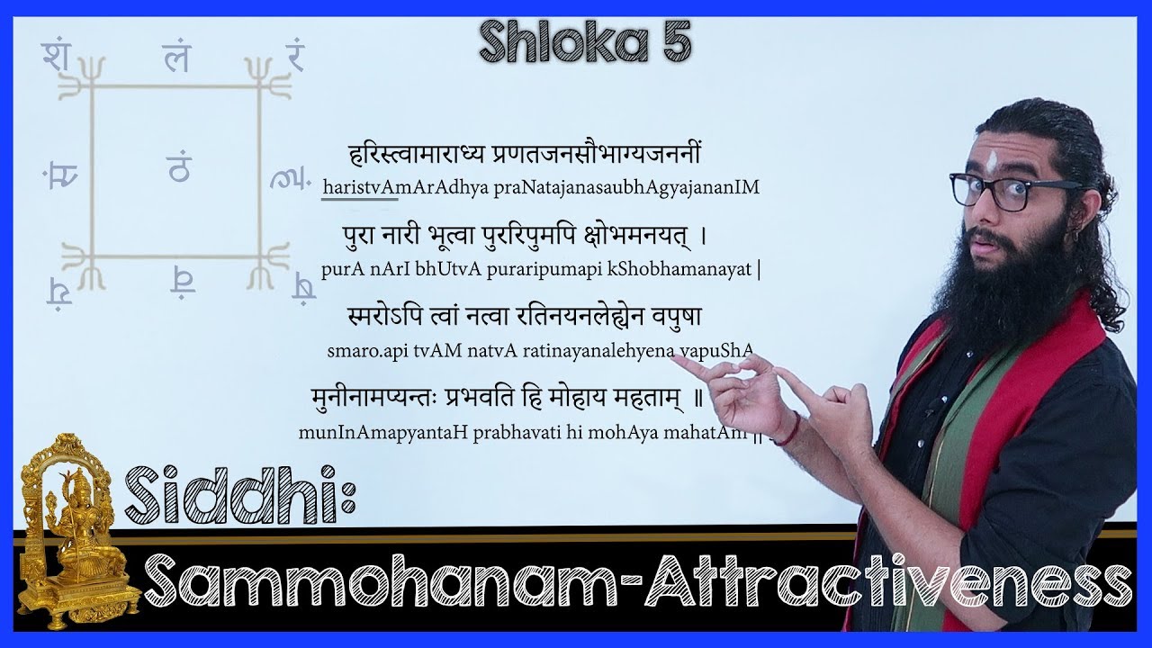 Soundarya Lahari Shloka5- Gaining an Attractive Personality Let's learn the fifth #shloka of #Soundarya_Lahari, including how to pronounce it, it's meaning, encoded #spiritual_secrets within it, and the benefits one can attain by practising it.