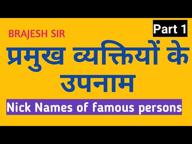 प्रमुख व्यक्तियों के उपनाम || Nick Names of famous person || BRAJESH SIR, CAREER DEVELOPING
