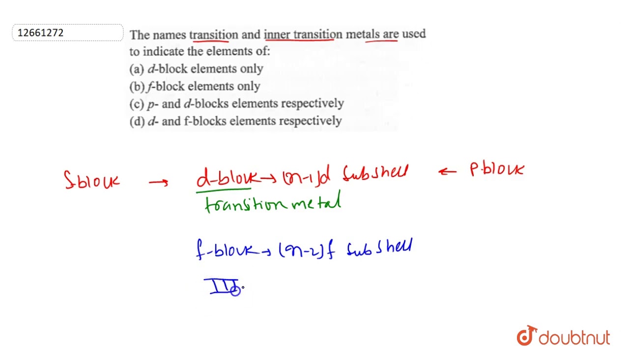 The names transition and inner transition metals are used to indicate the element of:The names transition and inner transition metals are used to indicate the element of: